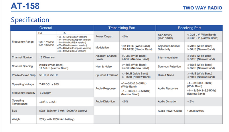 RADIO PORTÁTIL COMERCIAL AT 158 /V10